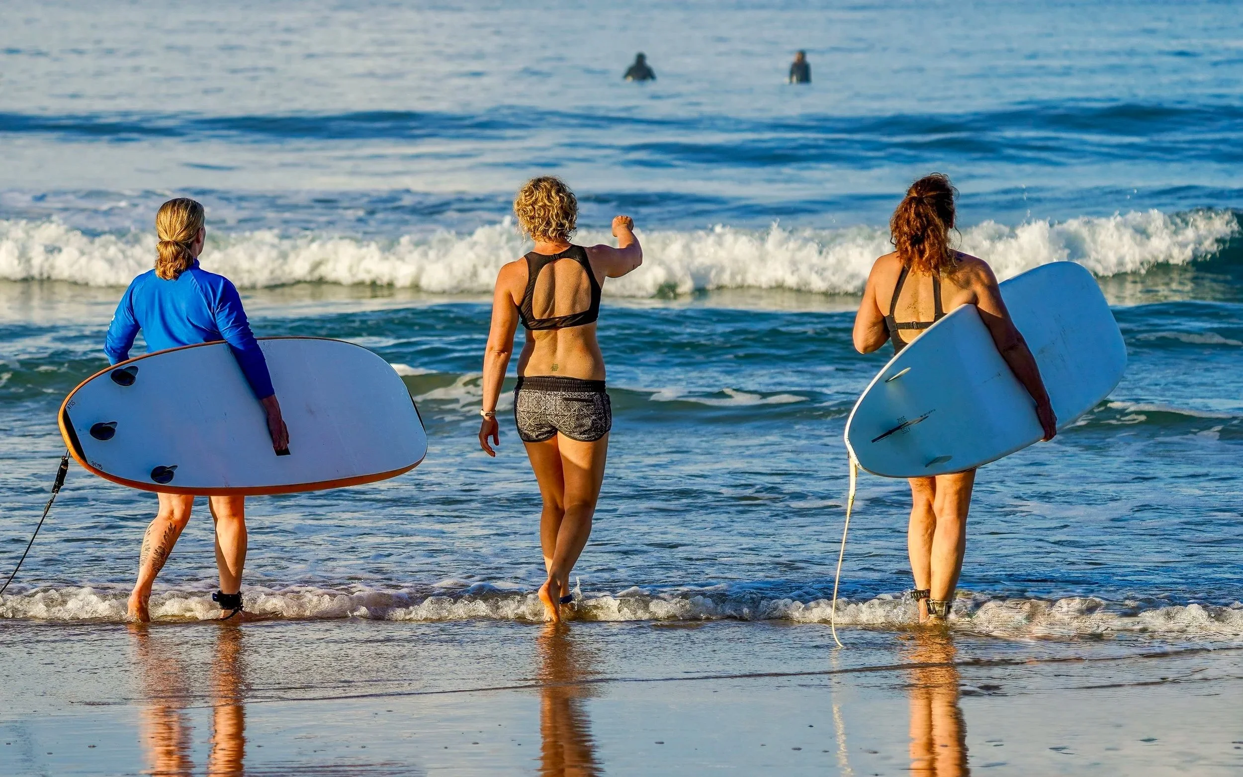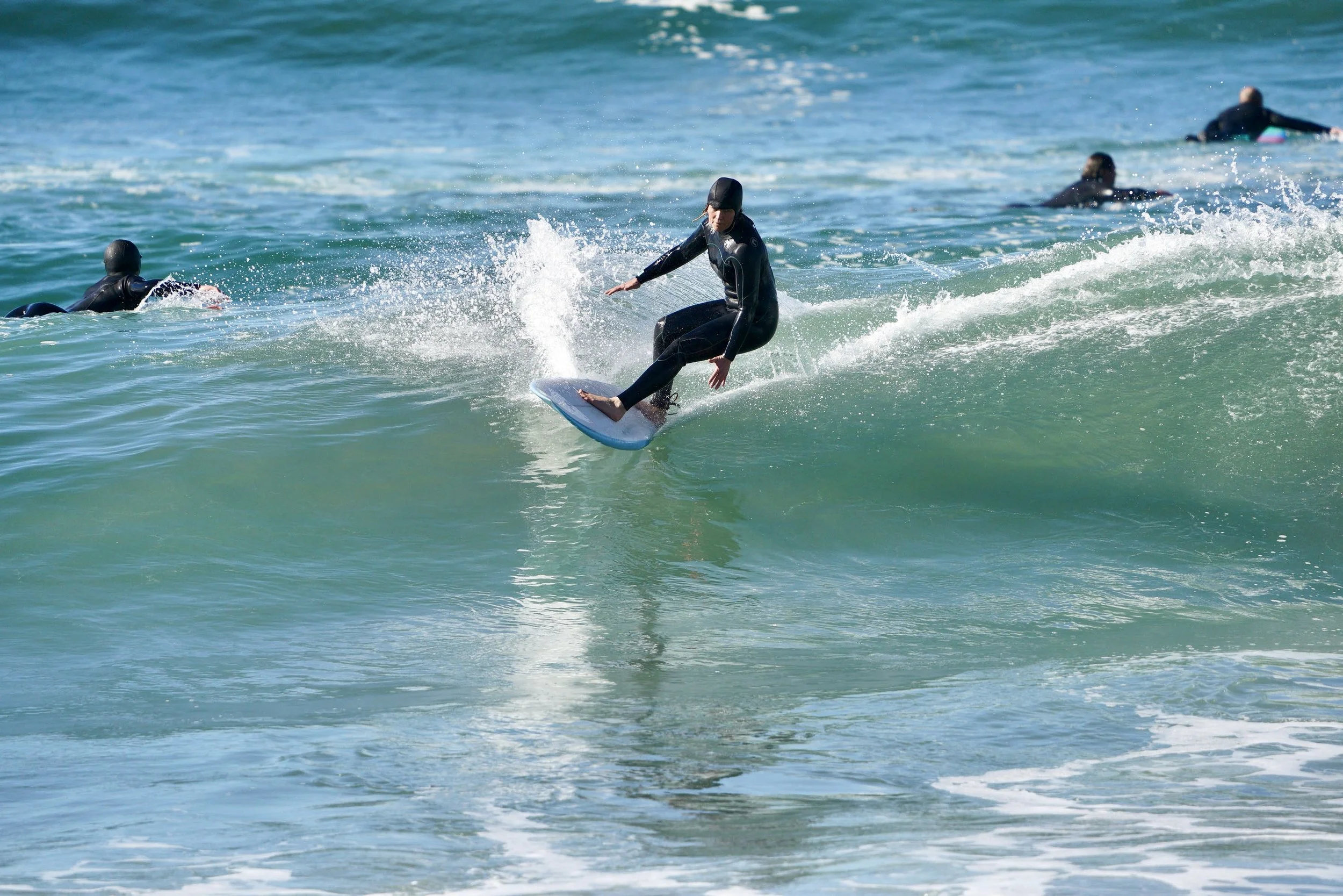 “Heather is the best. I was stuck trying to get to the next level. After 3 lessons, Heather got me riding 4 foot waves. She is an amazing surf coach!” Deniece